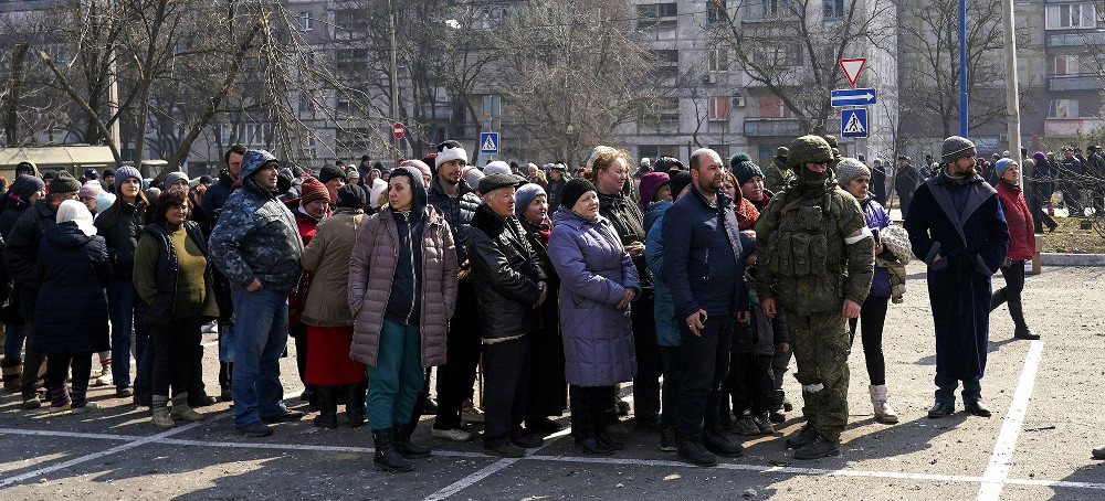 Civilians are being evacuated along humanitarian corridors from the Ukrainian city of Mariupol under the control of Russian military and pro-Russian separatists, March 24, 2022. (photo: Getty)
