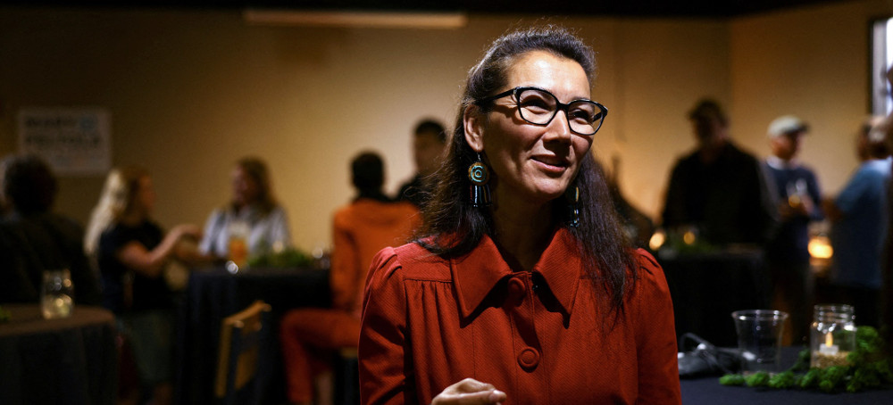 Mary Peltola speaking with reporters at a campaign party on August 16th, in Anchorage, Alaska. (photo: Kerry Tasker/Reuters)