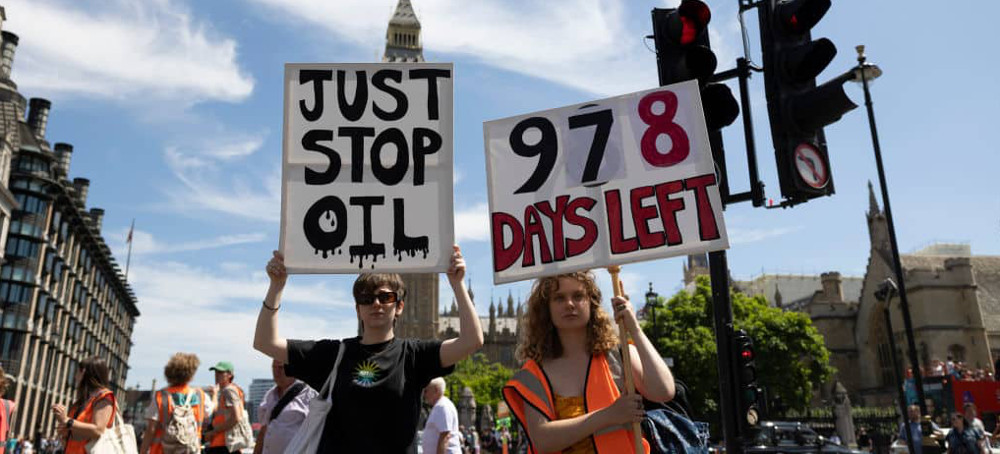 Multiple climate activists groups, including Just Stop Oil, Insulate Britain and Extinction Rebellion, marched from several locations in central London to Parliament Square to demand the UK government to stop investing on new fossil fuel to tackle climate changes. (photo: Getty)