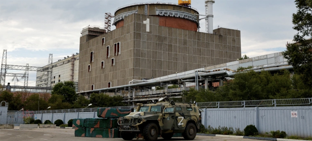 A Russian armored vehicle parked outside the Zaporizhzhia Nuclear Power Plant. (photo: Alexander Ermochenko/Reuters)