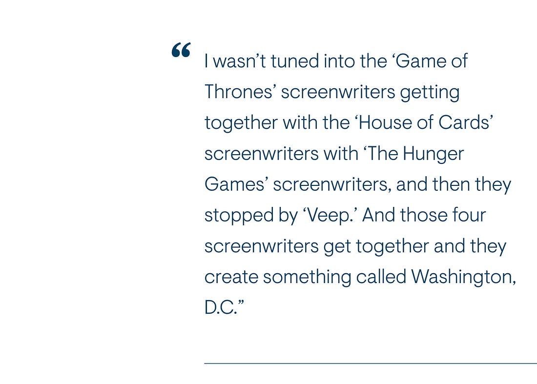 A front-stabber is somebody who’s going to tell to the truth about a situation. So what happens in Washington is you work there and there’s internecine warfare. There’s a backstabbing culture. For example, I don’t like you, Brian, so I’m going to talk to this Starbucks cup. I’m going to say, “Brian is a terrible person, here’s information I have on Brian. He’s cheating on his wife, he cheated on his taxes, he’s a horrific human. By the way, you can’t use my name, but here’s the sourcing. Please write a negative story on Brian.” That’s a back stabber.